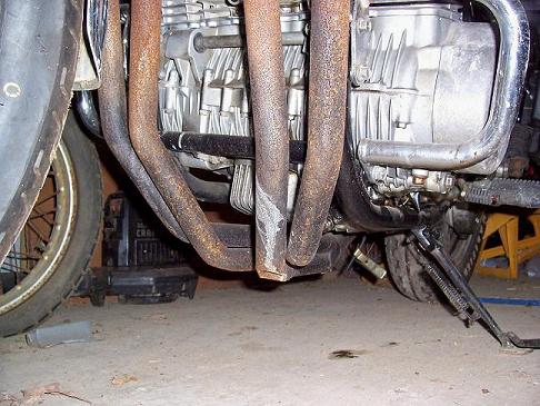 I have a 79 XS1100 with the 4 to 1 header on it and I want to go back to stock exhaust.......... wanna trade???????? this is the best picture I could get right now, the header is not rusted out, no holes but has a dent or two on the bottom.........