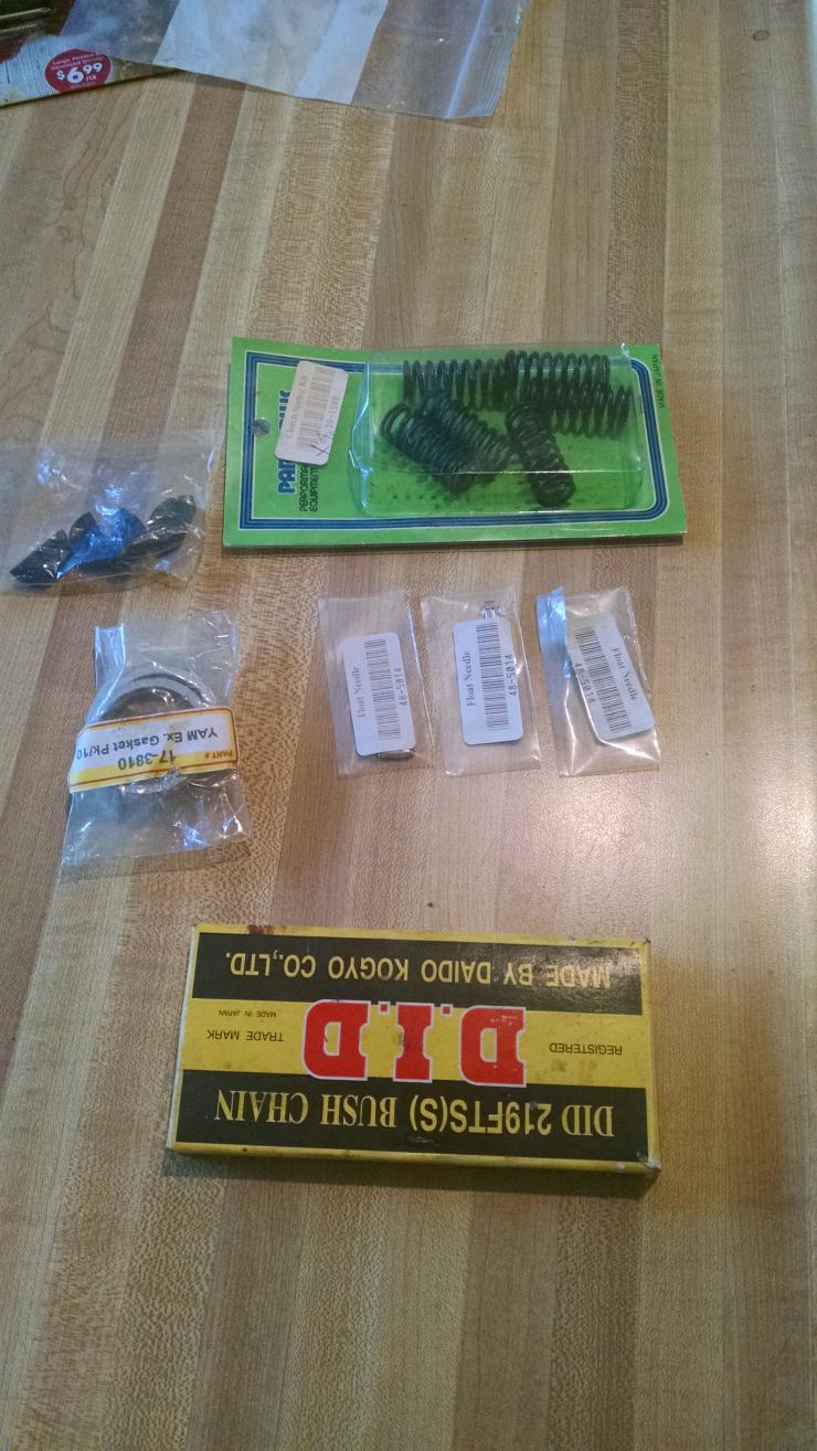 Cam chain, float needles, cam grommets, clutch springs, exhaust gasket.
