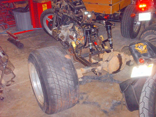 If i can find it i will post a link to a pic of a guy who did one out of an old gold wing, used either a chevy s10 or ford ranger rear end, what he did was make a swing arm that bolted to the outside of the fame and just came back to the rear end and conected it, used motor cycle shocks for the suspention, i will look for the pici can trike an xs11 for about 2500 bucks that includes rear end purchase ans one axle shortening stock suspension for now i may be fooling myself but i have friends who will help ,,all replies welcome why a trike? due to an illness my legs are weak ,,enough said ,,but the spirit is strong!!!!! ride safe ,slow mo!1979 xs1100 f