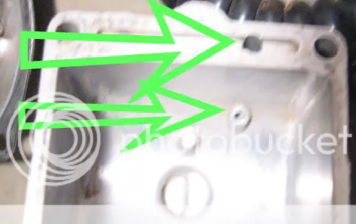 A follow up to bikerphil's post. Looking at the picture of the float bowel, put the spray tube of carb cleaner into the larger hole and spray. The spray should shoot out of the smaller hole. USE SAFETY GLASSES when doing this!