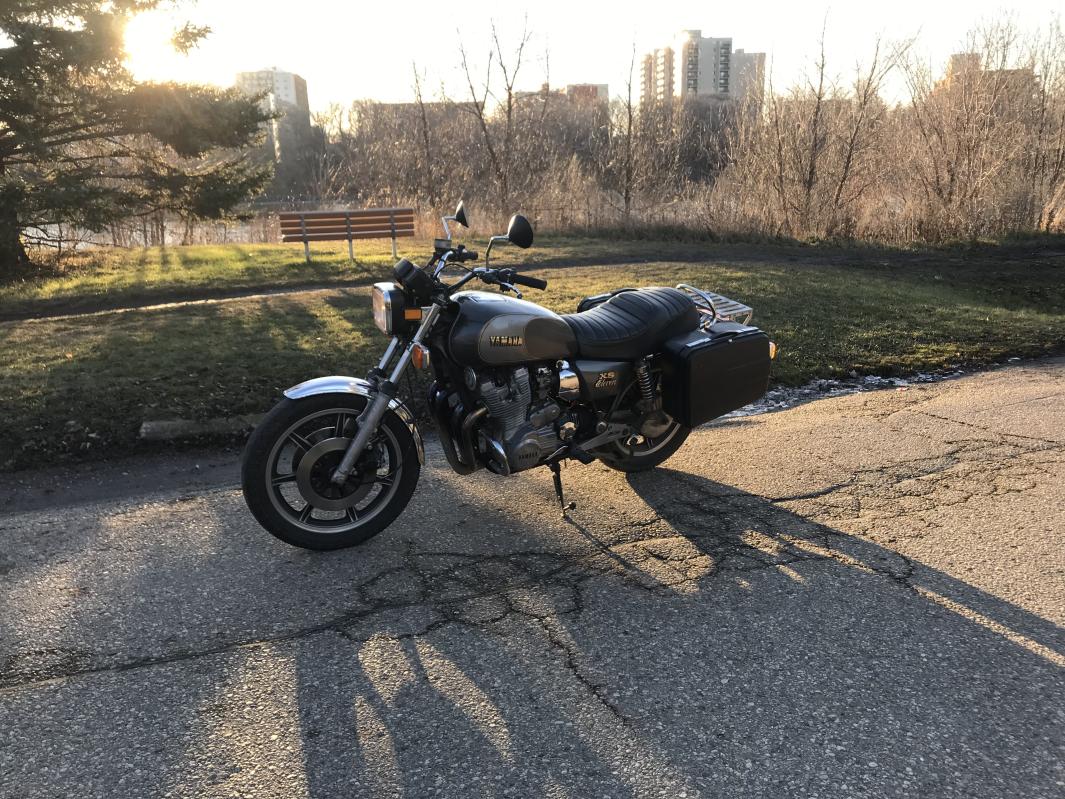 The weather here has is unusually good this year. I don't remember the last time I could ride this late in November. (10 C (50 F) on the 23rd) Invested in a really good riding jacket that's made all the difference. Although I've got the matching Yama-Vetter fairing and lowers, it's not a small job to bolt it on and remove it due to storage space limitations for the short time I'd need it. Going to invest in some handlebar muffs, something like what Deebs has, as they don't seem too expensive. After quilted jeans, decent boots and the great jacket, fingertips are what takes a beating, even with snowmobile gloves on. The bike doesn't care - seems to run great when it's cold out. But without a 3rd wheel, my season remains limited.