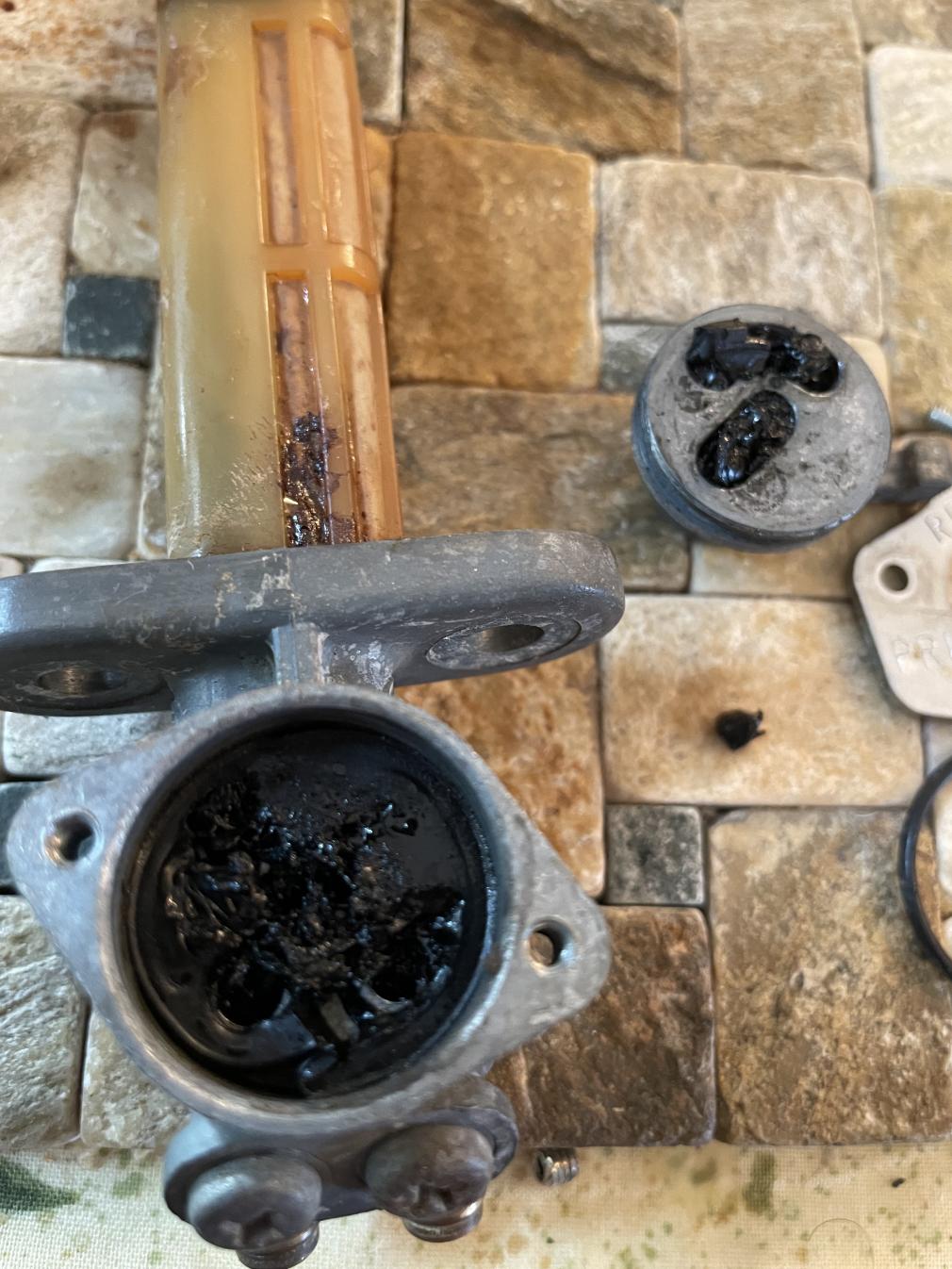 It is amazing what you find when things sit for whoever knows how long. Like a science experiment. I have seen just as bad on many I have refurbed. I am sure all the orifices are all full of gunk too. If you haven't already make sure you remove the two screws on the bottom of the petcocks so that you have better access to clean the tunnels.2 - 80 LGs bought one new