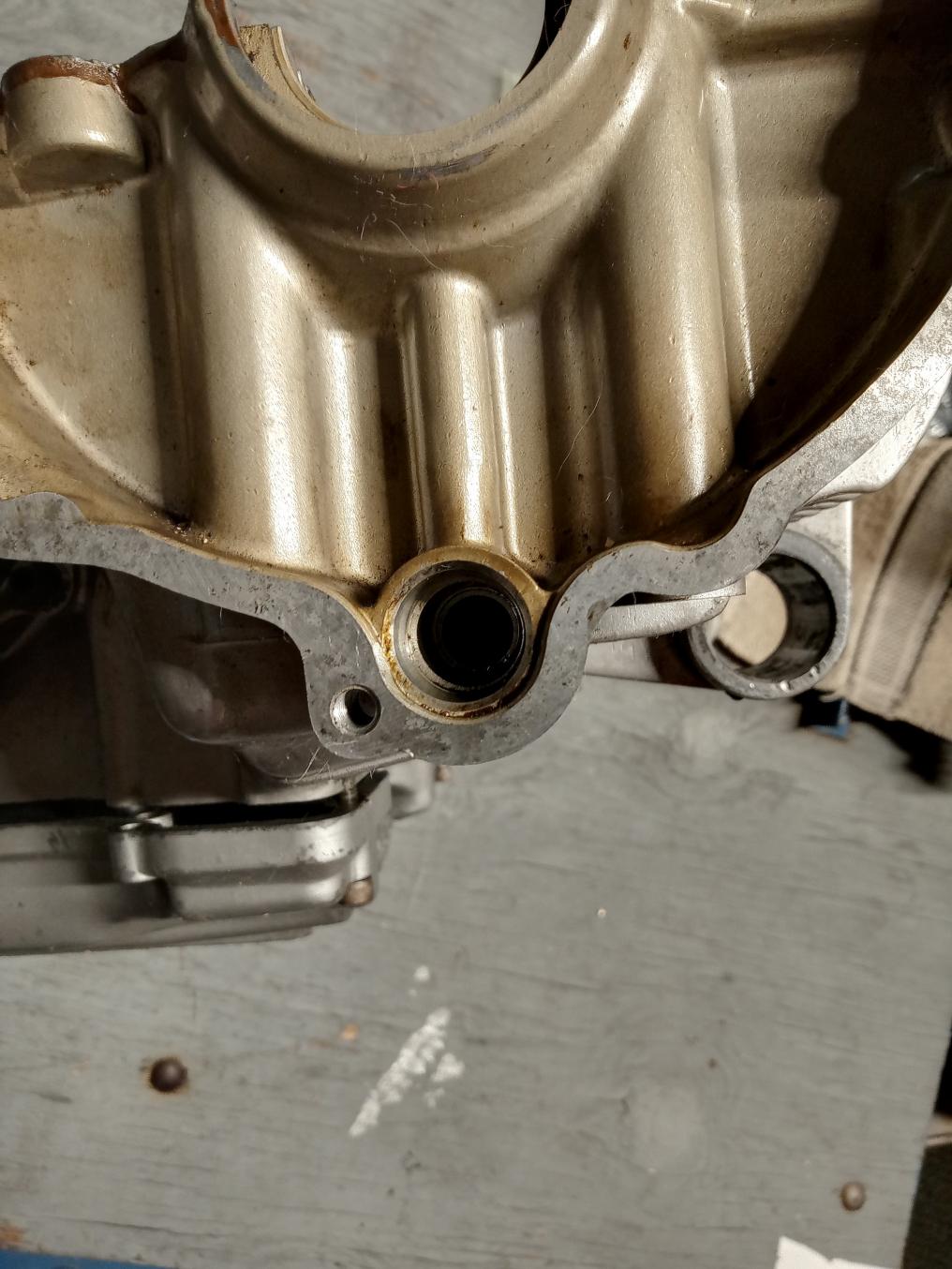 Oil on the bad foot? The seal for the right side is a different size as you know. You will need a 16MM 1.5 pitch bolt at least 50 MM long to remove the alternator rotor. An impact gun makes it a snap, otherwise you will have to somehow hold the rotor from spinning with a large strong screwdriver. On this seal when installing, the seal can only be driven in far enough so it is flush with the outside of the case. One half of the case is deeper than the other so it will end up crooked if you try to send it all the way home. After you get the old seal out and look in there you will see what I mean. It helps to have an extra seal on hand just in case you drive it too far because you will ruin it trying to get it out.