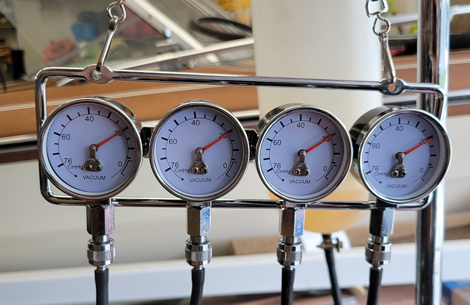 Carbs back on, check gauges, and synced! Should have the Special tank on Tomorrow, as I only need two "O" rings.