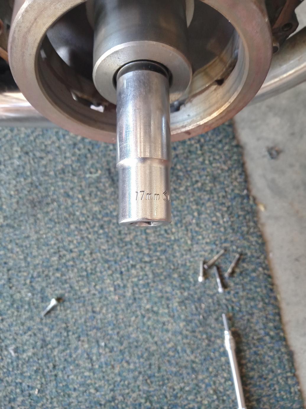 The bolt I got that pops the rotor out is 24 mm socket. Anyone know what size socket the bolt holding the rotor in? My socket set is only up to 19 mm. Anything bigger I need to buy or borrow along with the impact wrench.80 GComment