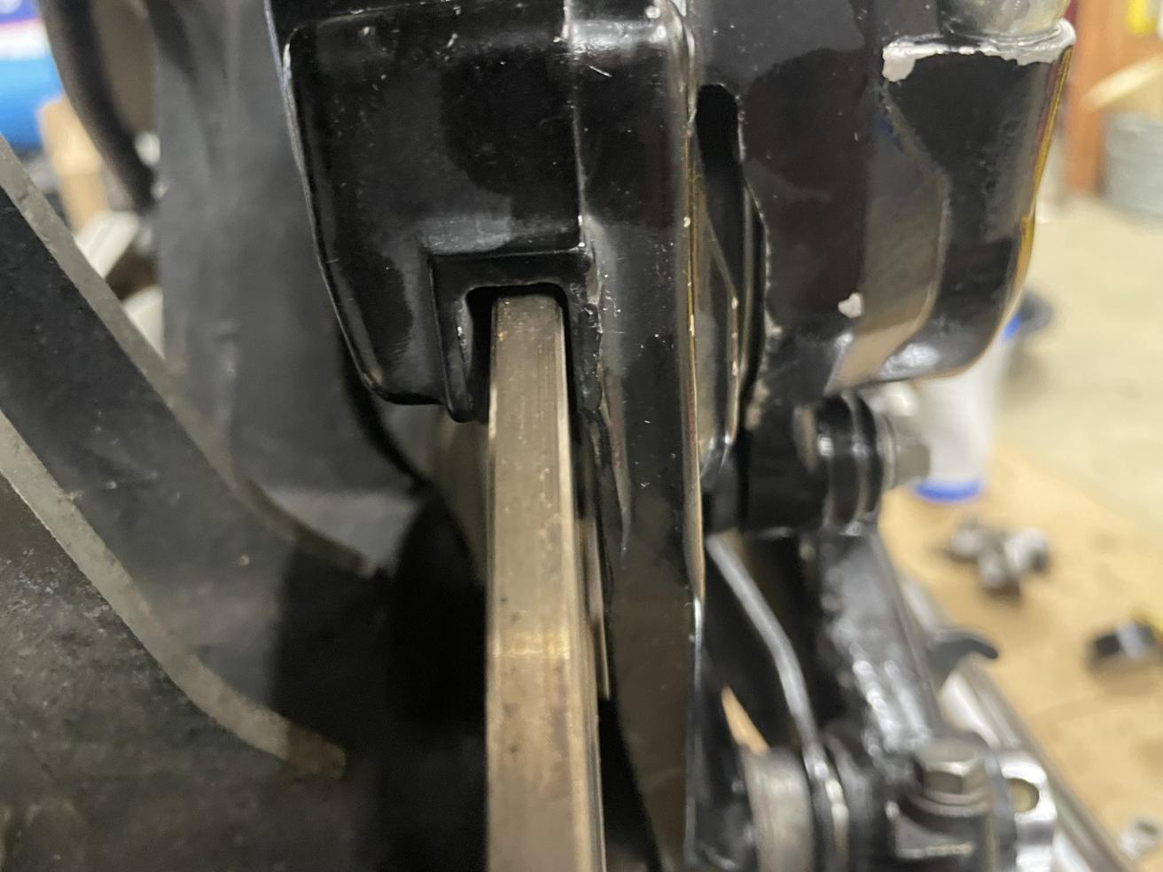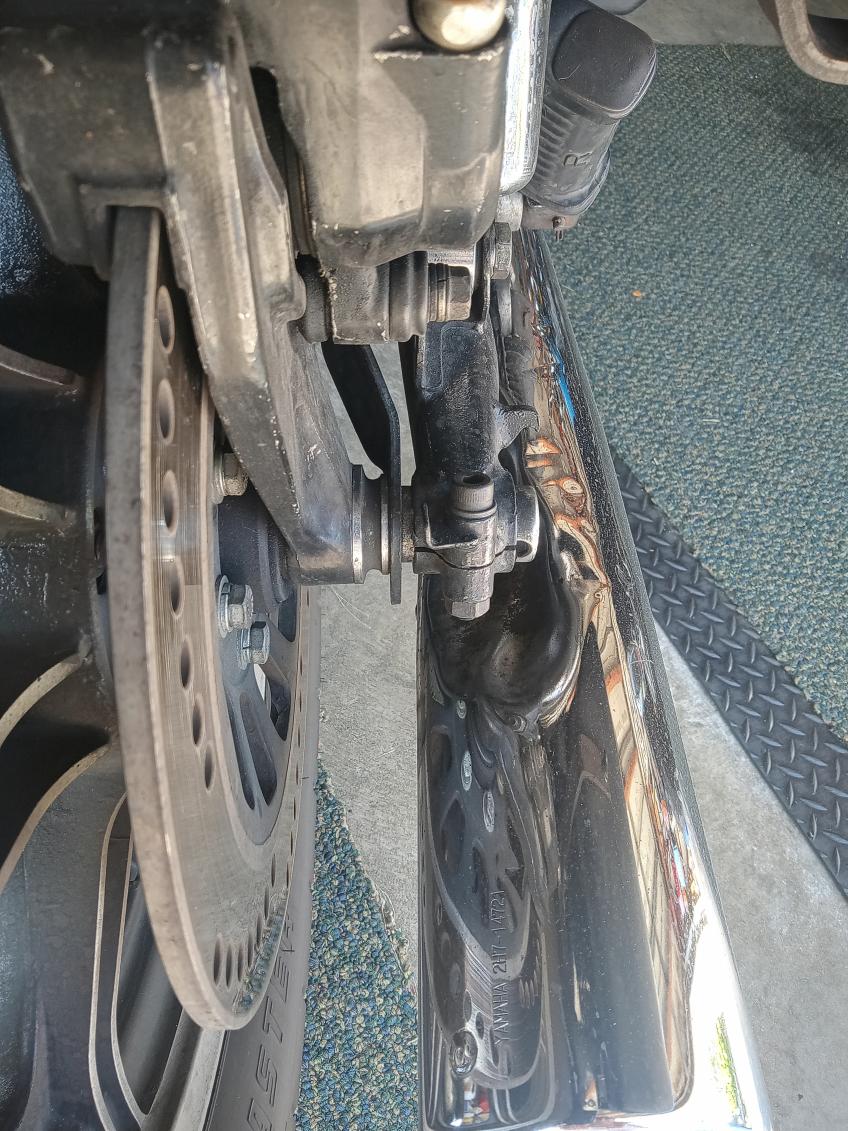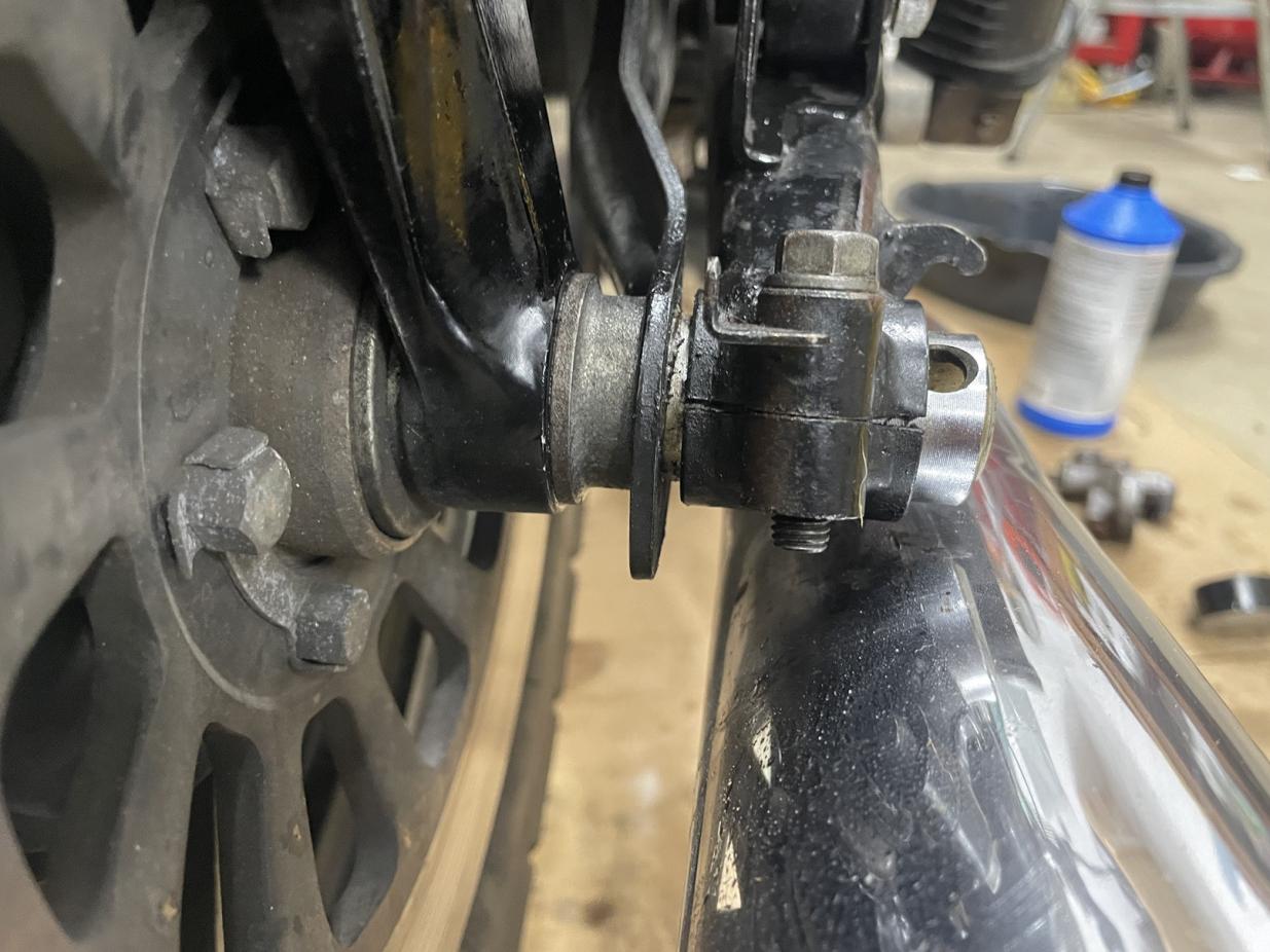 As far as the rear brake itself goes, I've got a fresh K&L master cylinder piston kit in my original M/C currently, brand new braided lines, a freshly rebuilt rear caliper with brand new SS piston and seals from brakecrafters. Bleeding the thing properly is still proving to be an absolute bear. I've got brake pressure but with long pedal travel. My suspicion is that I can't adjust the pedal travel rod very much at all, possibly due to the fact that I may(?) have this caliper alignment issue.