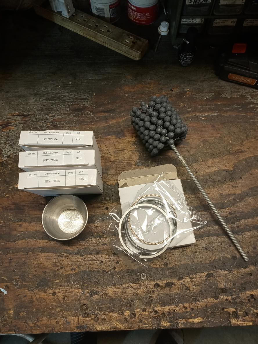 While I'm at it I did the compression test. Ice cold, my readings are 90-100-92-92. A fail. I put a TSP of MMO in each cylinder. 130-140-130-150 Needs a top end. I put it all together, fired it up and got it warm. 100-100-100-105 She's worn out.