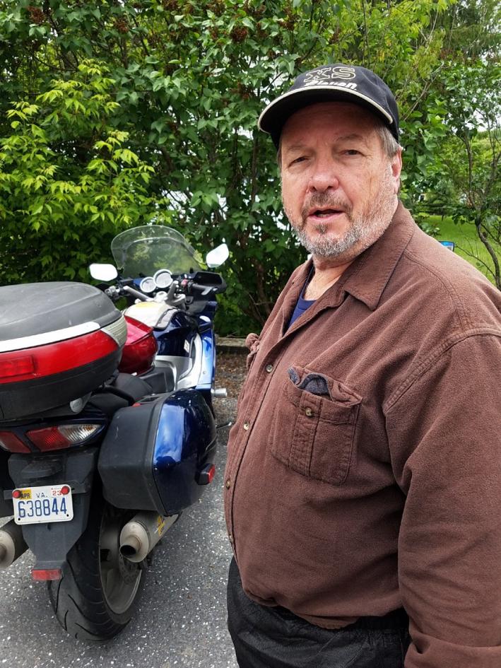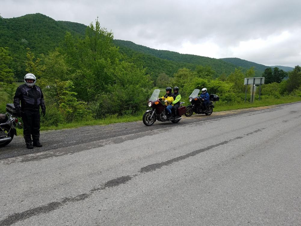 Friday - 27 May. Donned my rain gear and headed out west on I-66. Rain began about 20 miles east of I-81. While Keith agreed to meet at the Strasburg Shell at 1000, I thought he was staying at the Ramada. At the Shell, I picked the pump where all the water was running by. Topped off, I rode up to the Ramada, looking around for Keith’s BMW. I went in for a rest break. Back out I saw him waiting. Evidently he was on the other side of pump at the Shell.